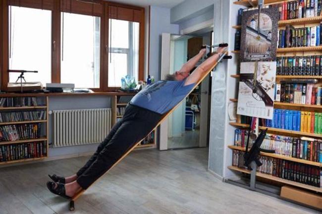 Для поддержания мышечного тонуса обустроен уголок здоровья. Несмотря на почетный возраст, Анатолий Александрович подтягивается и качает пресс на многофункциональной скамье для силовых тренировок.