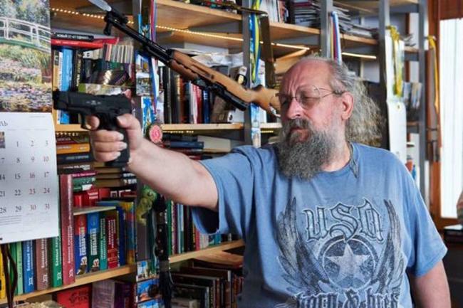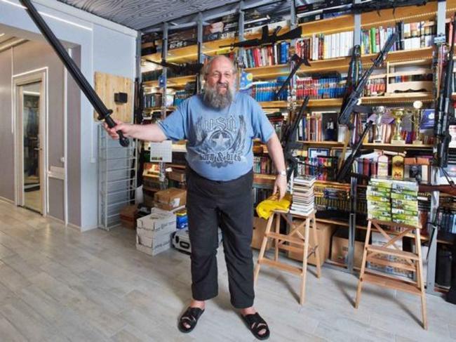 Помимо книг, в просторном помещении выделено место под экспозицию коллекции оружия. Мечи, сабли, ножи, автоматы и прочая военная атрибутика являются гордостью эрудита.