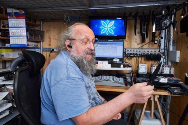 В этой же комнате в окружении сотен книг российский гений работает. Комфортабельное компьютерное кресло и современный компьютер — все, что нужно профессионалу для работы.