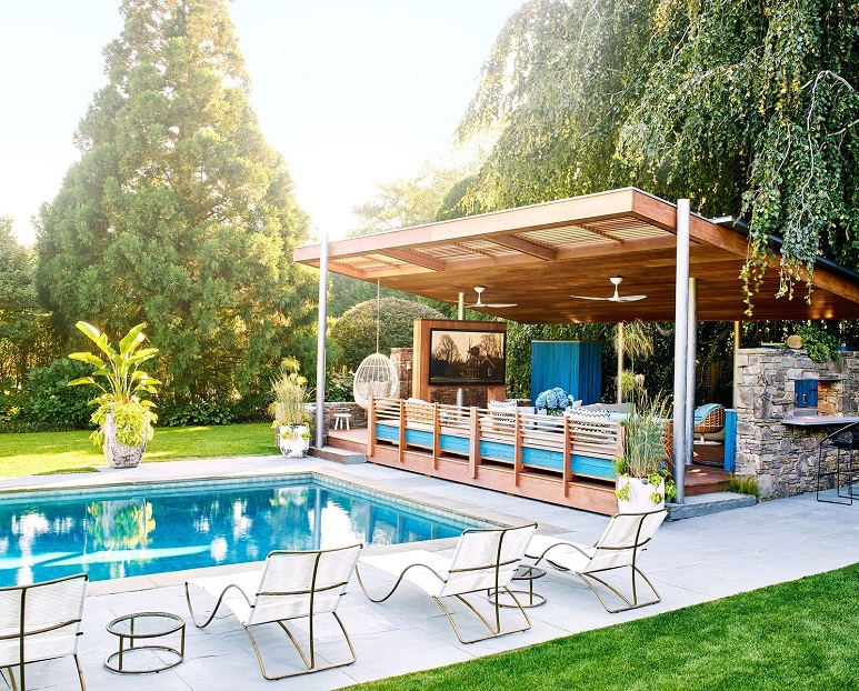 К дому примыкает ухоженный сад, бассейн, крытая веранда для отдыха. На земельном участке расположены необычные инсталляции (например, огромная прищепка для белья размером с человеческий рост). Роберт Дауни младший обожает удивлять знакомых и друзей, его дом — это музей, состоящий из уникальных предметов.