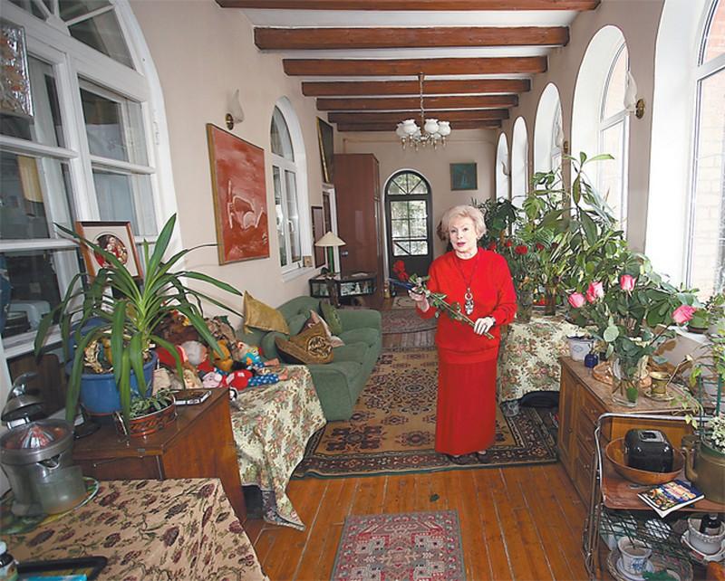 Свободное время актрисы любят коротать в зимнем саду. Помимо различных цветов и растений, пространство утопает в мебели: мягких диванах, деревянных комодах, советских тумбах и журнальных столах. Пол застелен персидскими коврами разных размеров.