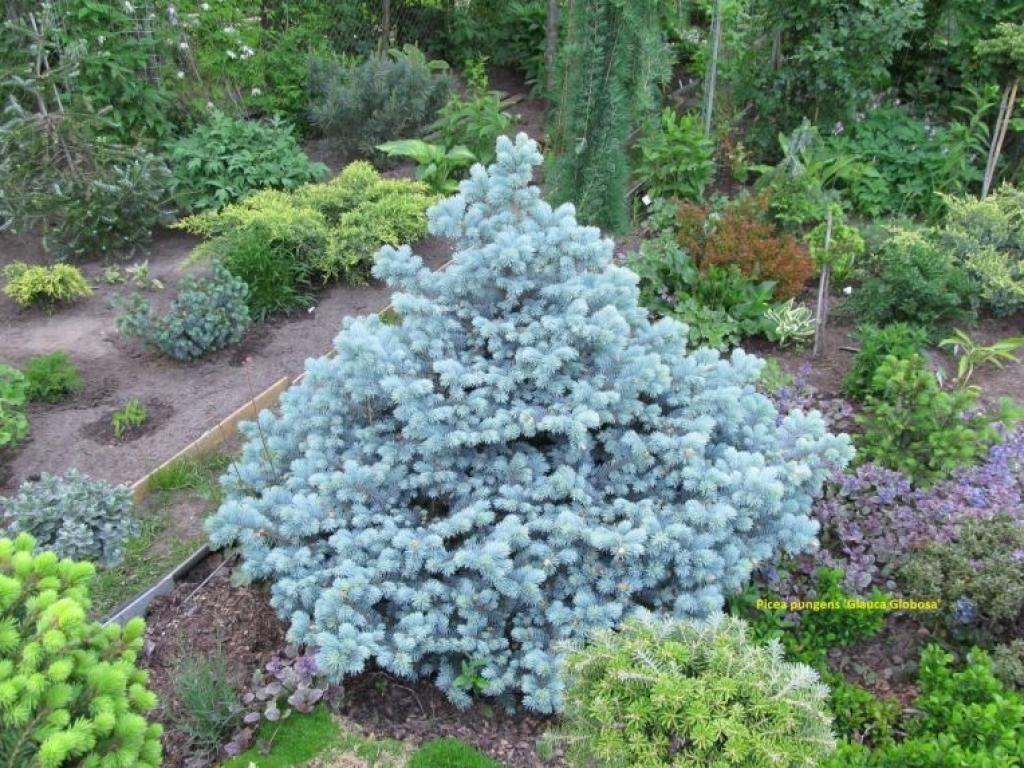 Маленькую ель легко сочетают в ярких композициях даже новички в садоводстве. Глаука Глобоза отлично разбавляет садики с декоративными листопадными кустарниками и плодово-ягодными деревьями: сиренью, рябиной, анафалисом, облепихой и крыжовником. Голубые хвоинки хорошо комбинируются с листьями, цветками и плодами этих растений. В ранние годы по сторонам от растения высаживают однолетние цветы.