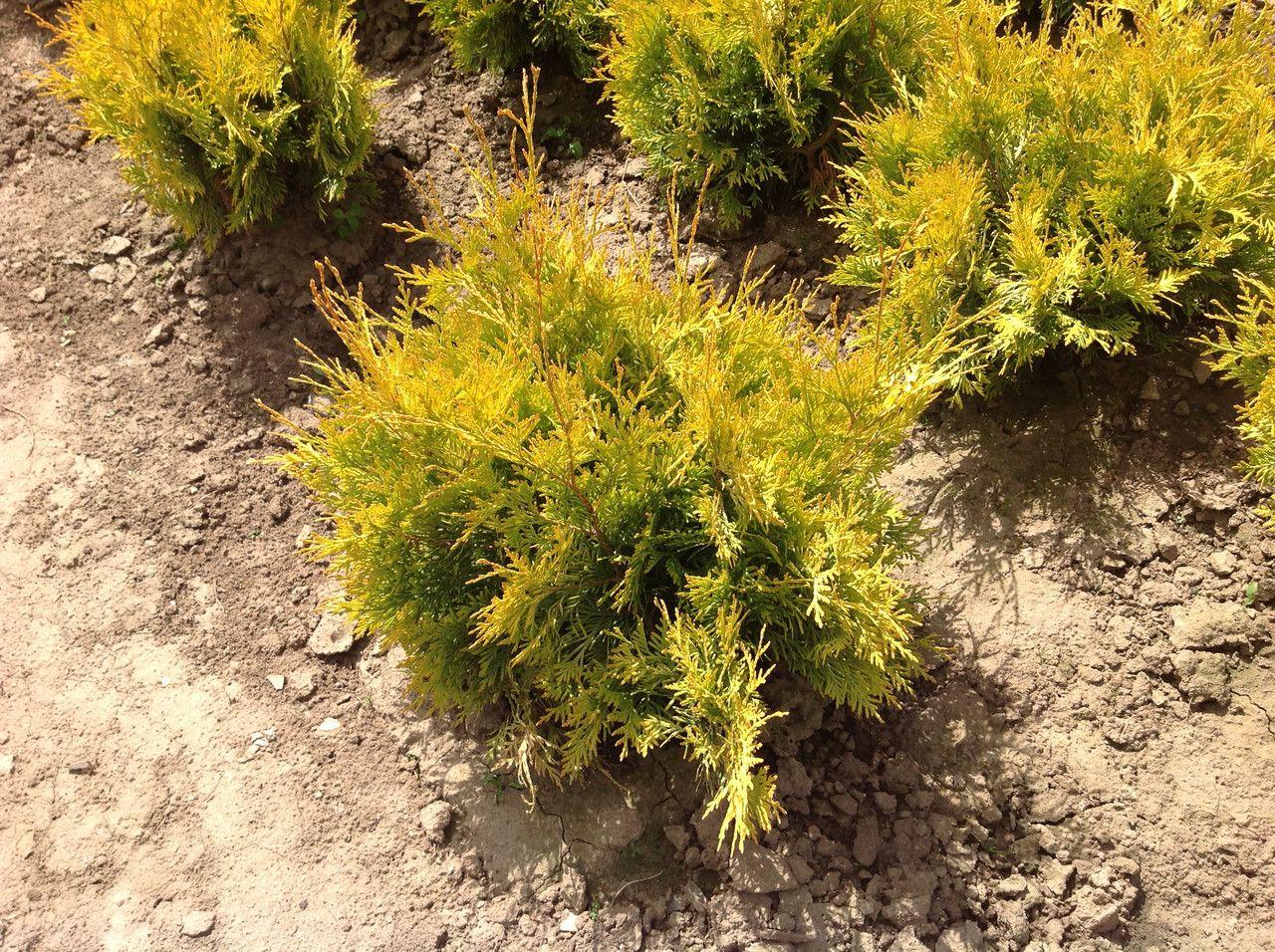 Нежелательно высаживать растения в затененные места, пусть деревья и примутся, без достаточной освещенности потемнеет хвоя и тогда туя потеряет свой главный признак — светло-зеленый, а иногда золотистый окрас. Чрезмерное количество солнечного света тоже нехорошо, могут случиться солнечные ожоги. Лучше всего для туи подойдет полутень.