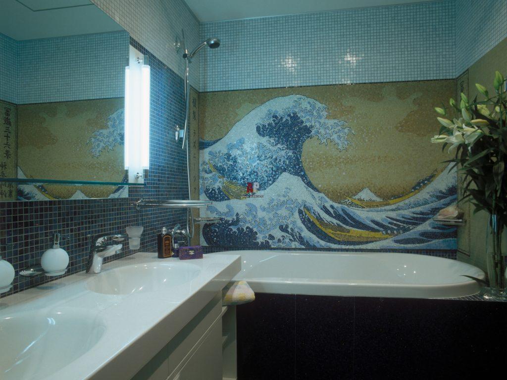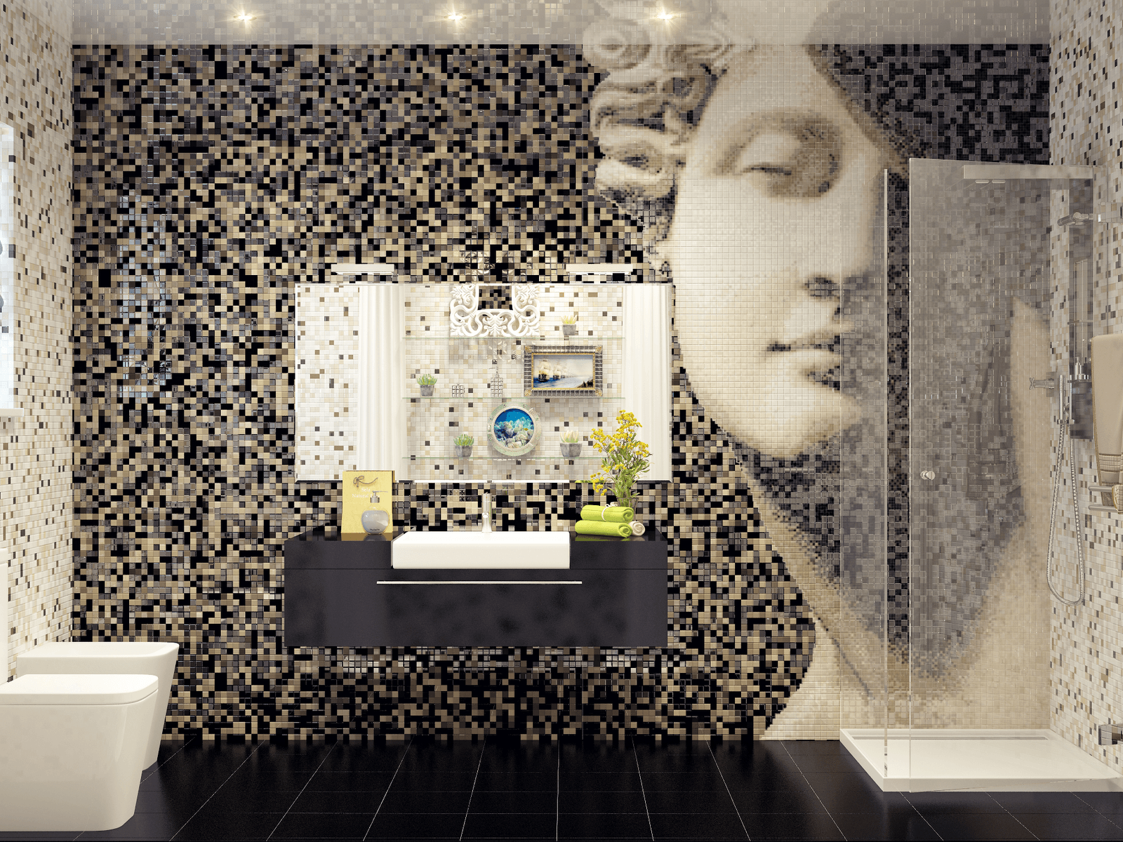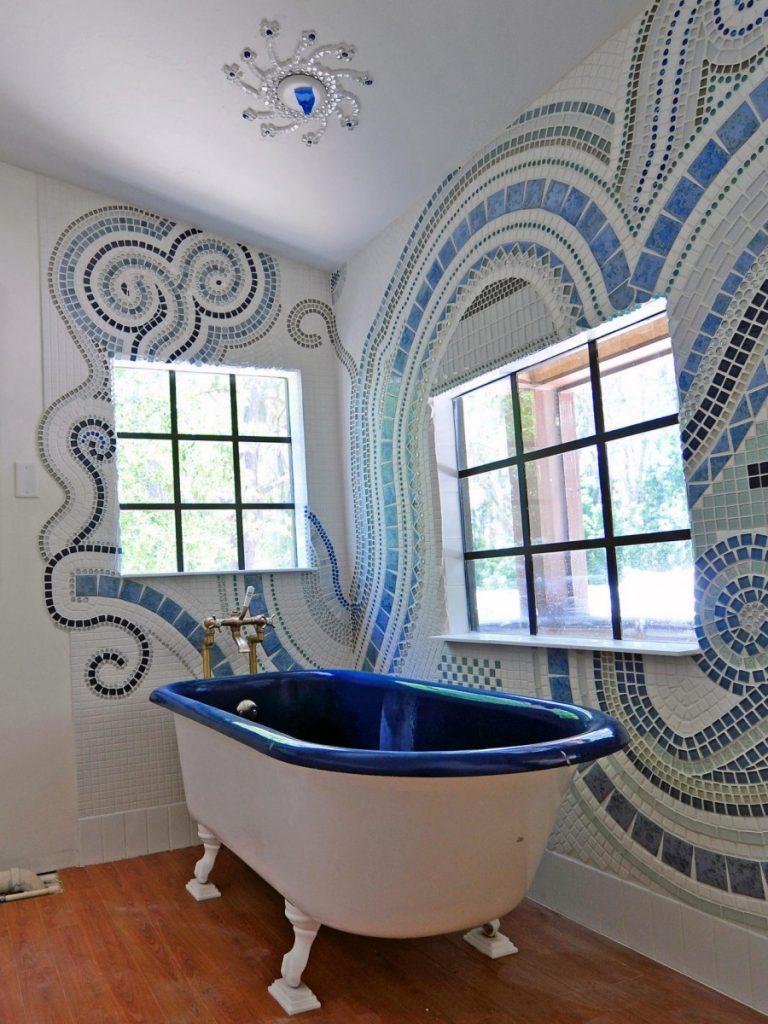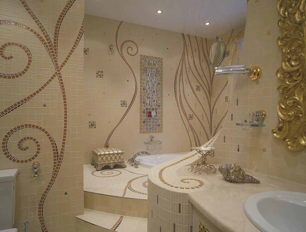 Из плиточной мозаики можно выложить абсолютно любой рисунок и узор. Скучная ванная комната превратится в настоящий шедевр, стоит только подключить фантазию.
