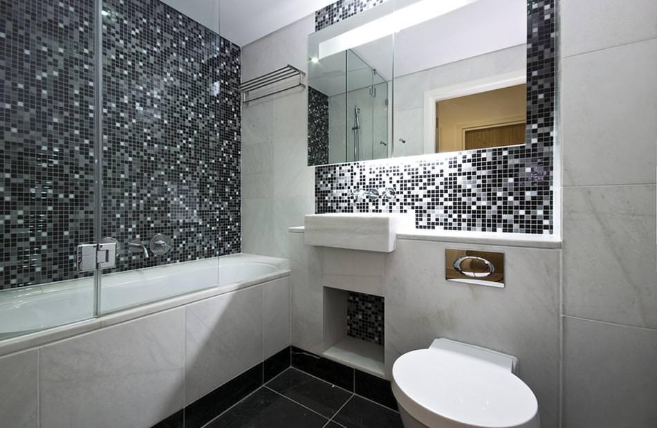 Плитка мозаика — один из лучших облицовочных материалов для ванной комнаты. С её помощью можно сделать интересные орнаменты и оригинальные панно на стенах помещения. Представляем несколько наглядных фото мозаичной плитки, украшающей санузел.