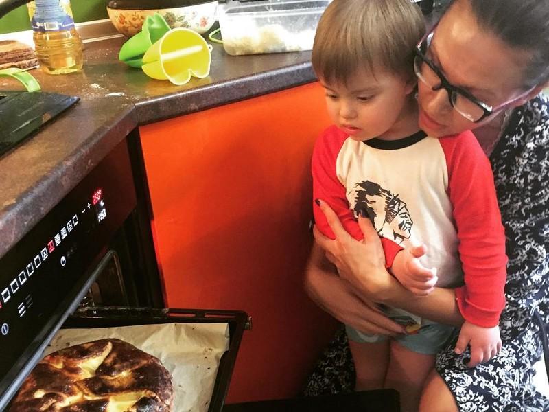 Кухня оформлена в ярких тонах, ведь приготовление пирогов и имбирного печенья — семейный ритуал, в котором с удовольствием участвует сын Эвелины Семен.