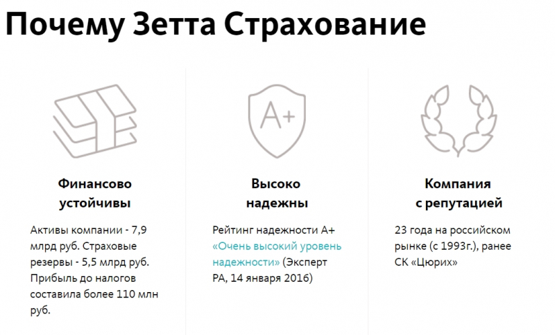 Помимо этого, СК «Зетта Страхование» обладает рейтингом гарантии класса А++.
