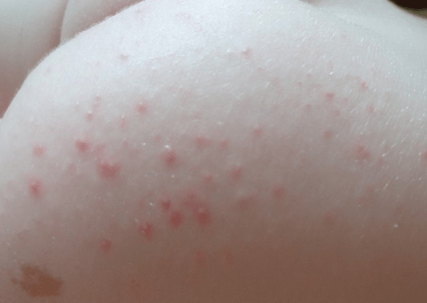 Подобные прыщи вызывают сильный зуд, поэтому малыш постоянно нервничает и, возможно, плачет. Также примечательно, что высыпания вскоре распространяются по всему телу.