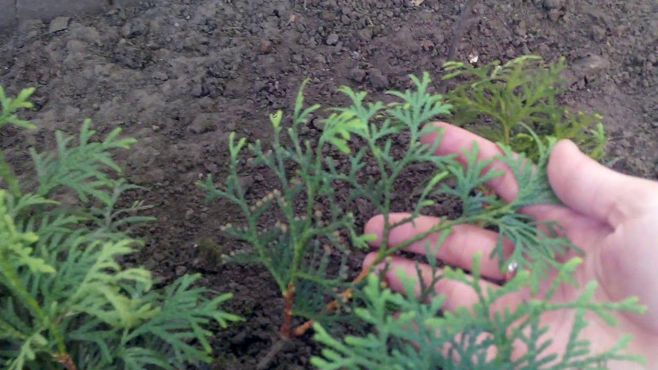 Растения высаживают в легкую почву, в качестве дренажа используют речной песок. Выращенная из черенка туя быстро адаптируется на месте, если у нее будет мощная корневая система. Для этого саженцы выращивают в смеси листовой земли, включая в нее торф и песок. Для обеззараживания ее поливают 3% раствором марганца.