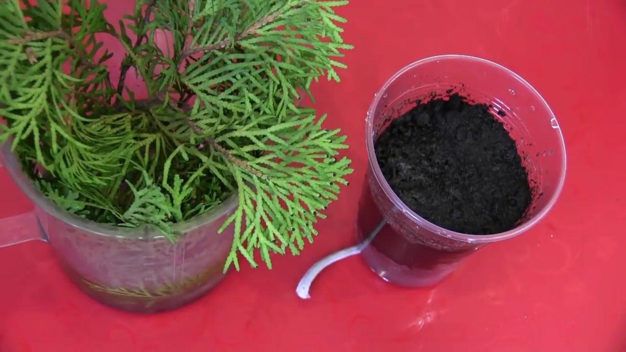 Об укоренении растений свидетельствуют молодые побеги, появившиеся на веточках. В воде черенки укореняются хуже, поэтому этот способ используют редко. Черенковать тую можно еще 1 способом, для этого используются картофелины. В клубнях содержатся питательные вещества, поэтому они заменят почвенную смесь.