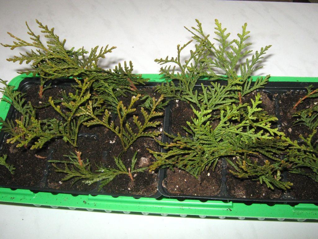 Те веточки, которые были взяты с туи осенью, дадут корни позже. Полностью сформировать их они смогут лишь в следующем году.