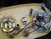 Сначала снимаются фастоны с одного или двух ТЭН и защитного термостата, откручиваются крепёжные гайки и винты.