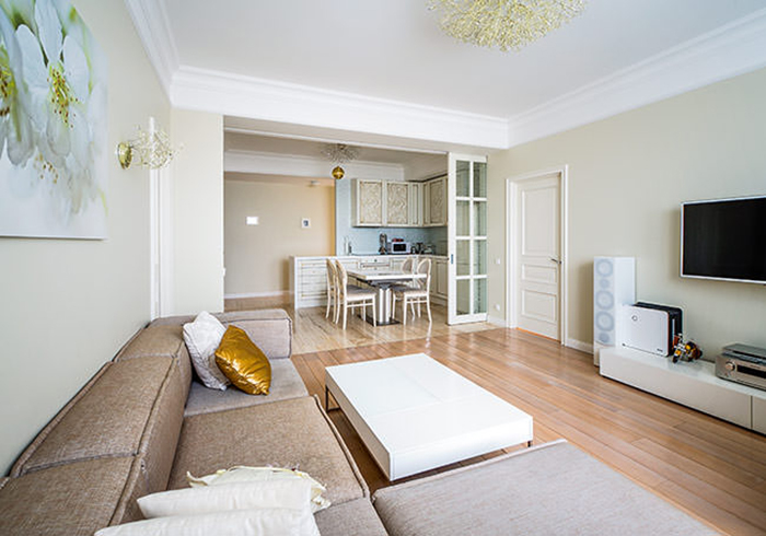 Площадь квартиры — 70 кв. м. Планировка стандартная: гостиная, обеденная зона с кухней, спальня и две детские. Оформление – нежное, как голос исполнительницы, и романтичное, как её песни. Дизайнерские идеи здесь тесно перемешаны с творческими поисками самой хозяйки. Неудивительно, ведь детали, делающие дом уютным, может добавить только тот, кто в нём живёт!