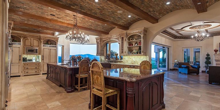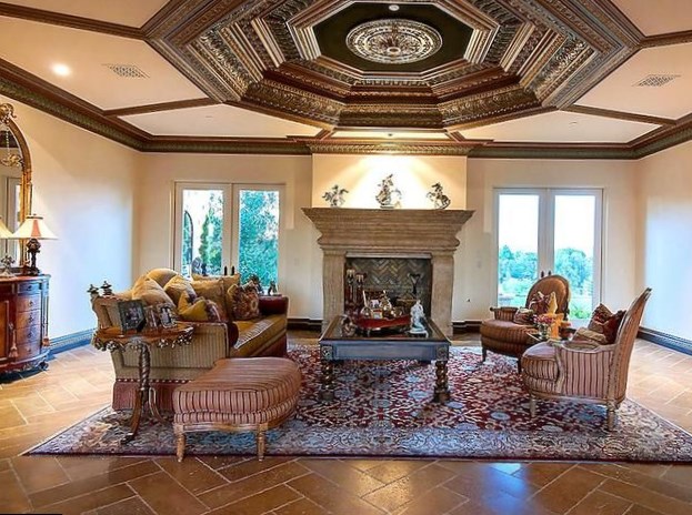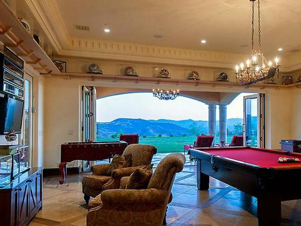 Дом британской кинозвезды оформлен в тосканском стиле. Он поражает роскошью и богатством. Помимо просторных комнат, имеется тренажерный зал, библиотека, кинотеатр. Также в доме несколько спален и ванных комнат, бар.