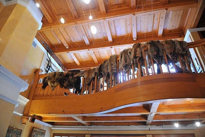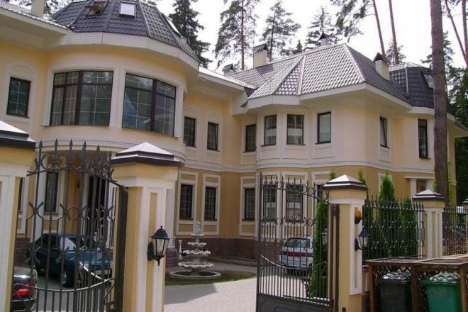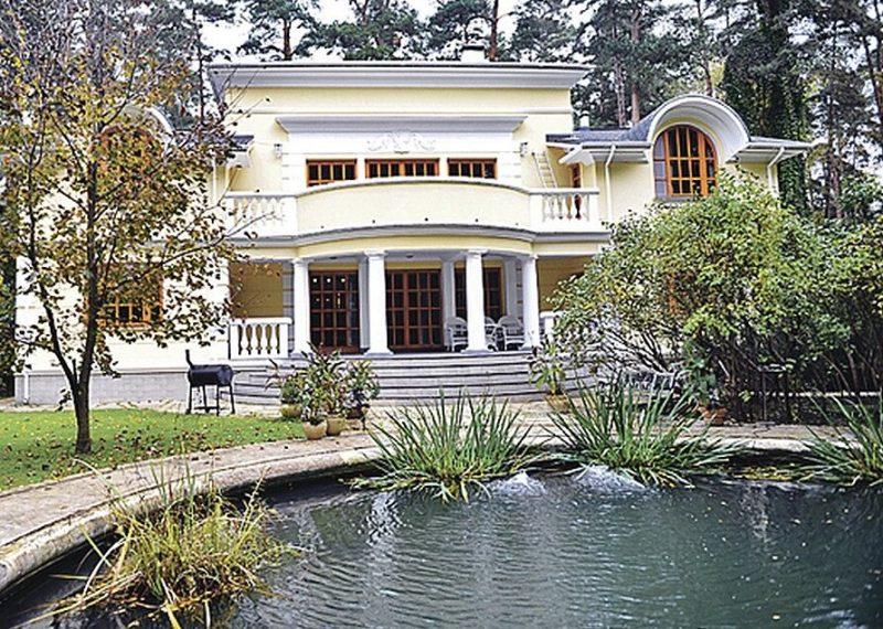 Особняк построен на площади равной нескольким гектарам. Помимо главного здания, там расположены гостевые домики и декоративные строения. Придомовая территория облагорожена и обладает освещением.