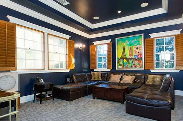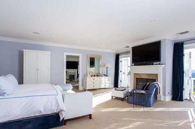 В доме 7 спальных и 8 ванных комнат, гостиная, просторная библиотека, зал для отдыха, тренировочный зал. Почти во всех помещениях есть камины, что усиливает ощущение уюта.