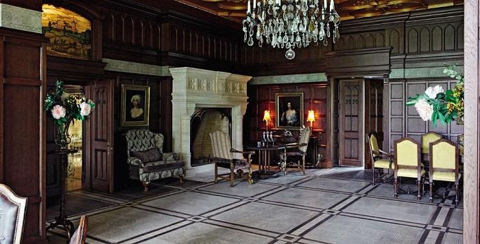 Максим Галкин любит антикварные вещи, поэтому в большинстве комнат замка выдержан викторианский стиль. Основа указанного дизайнерского направления включает: