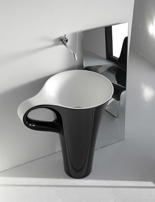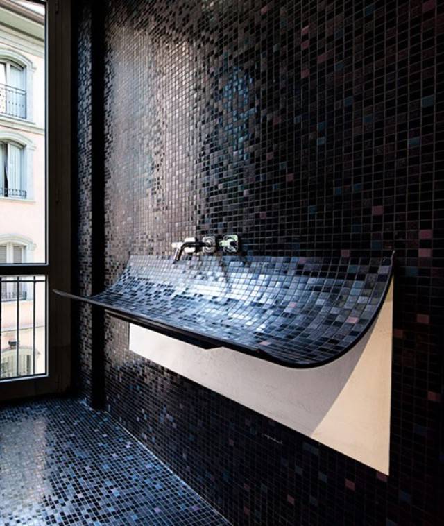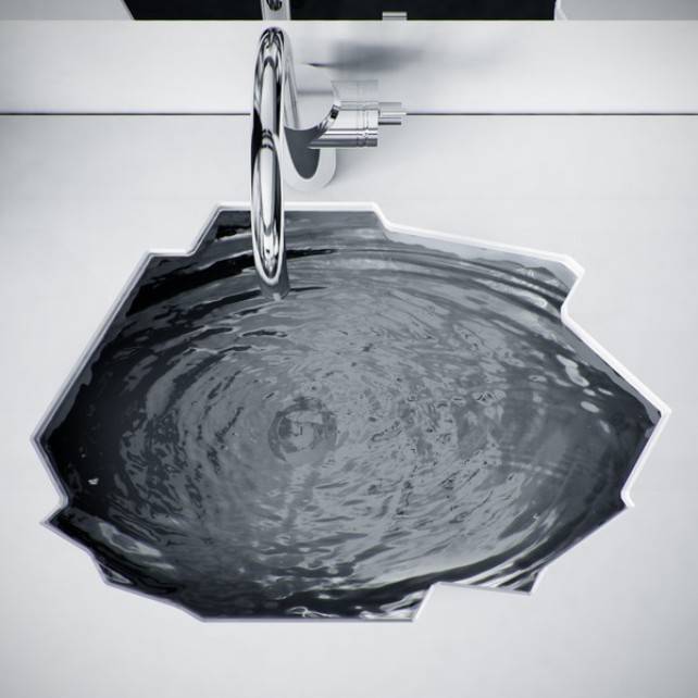 А при взгляде на эту раковину кажется, что она вообще непригодна для использования. Однако это лишь видимость: в качестве прозрачных элементов использовано обычное стекло.