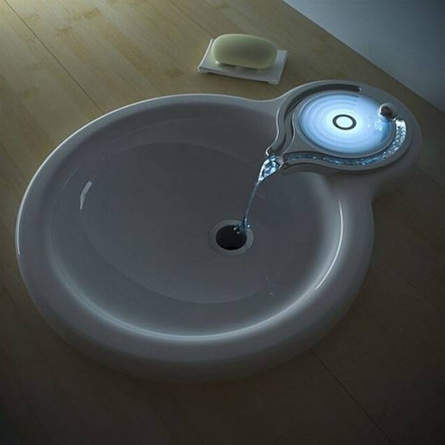 А в этой раковине температурой воды и подсветкой можно управлять, перемещая шар.