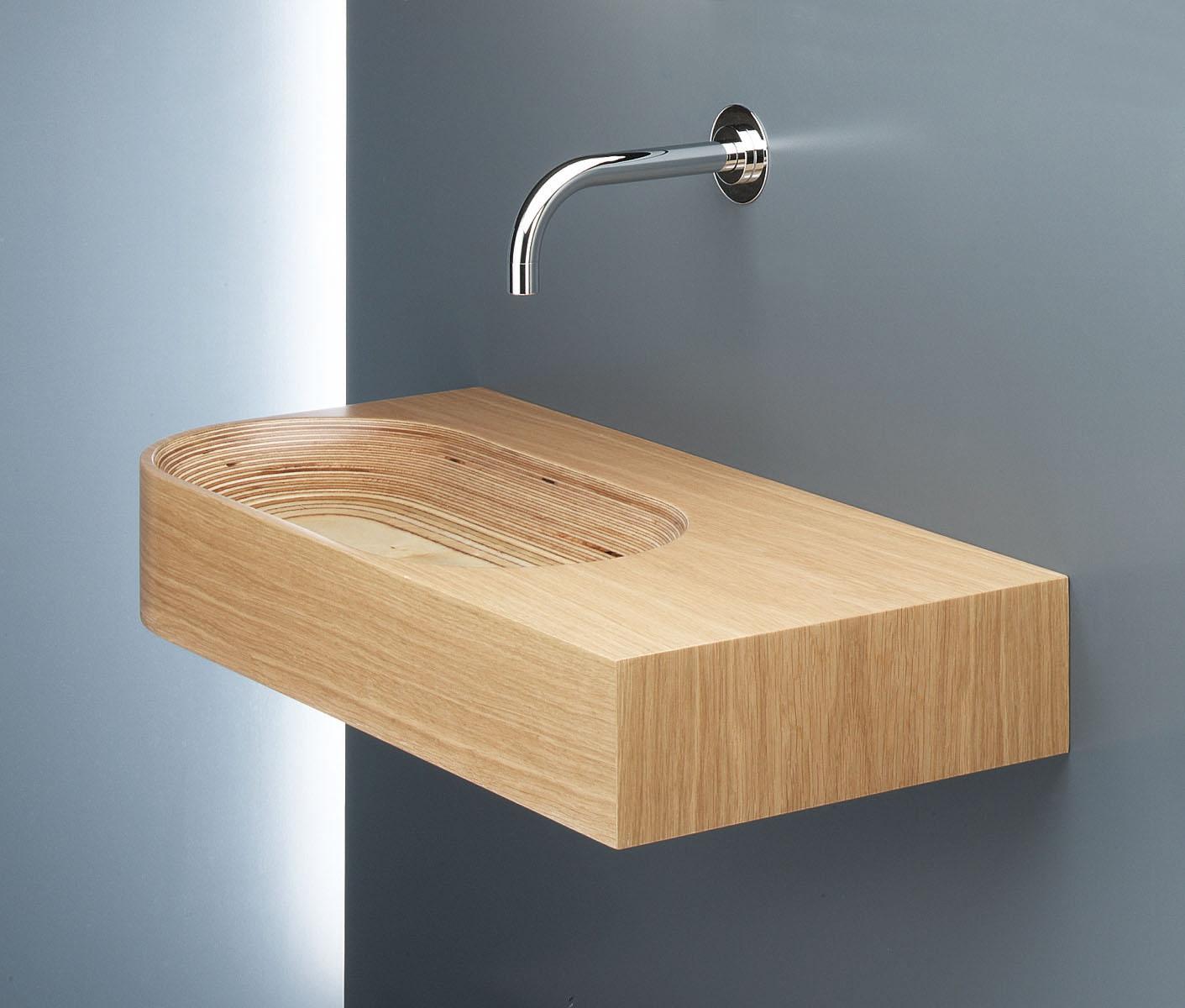 Раковина в эко-стиле: из-за отсутствия трубы, по которой стекает вода, создаётся впечатление, будто бы раковина парит в воздухе.