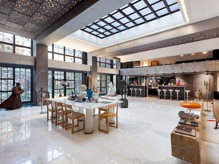 Вниманию гостей здесь представлены картины, скульптуры, сотканные вручную ковры и многие другие произведения искусства. Над интерьером работали такие известные архитекторы и дизайнеры, как Стефан Моканю, Гийом Труве и Ален Гализья. В доме более 2 десятков комнат, половину из которых составляют спальни.