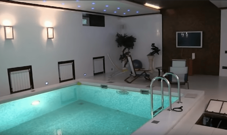 Цокольный этаж представляет собой место, где расположен бассейн. Рядом возле него уютный и теплый камин, где певица любит сидеть по вечерам и отдыхать.