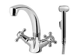- Смеситель для гигиенического душа вентильного типа. Объем подаваемой холодной и горячей воды, попадающий в смеситель, регулируется при помощи вентильных кранов. В смесителе, в результате конвекционных процессов смешиваются в заданной пропорции горячая и холодная вода, и мы получаем воду необходимой температуры. Недостатком подобной конструкции является неспособность смесителя поддерживать необходимую температуру в случае изменения давления по сравнению с тем давлением, которое было на момент регулировки температуры воды, а также необходимость устанавливать на трубы обратный клапан. Установка обратных клапанов предотвратит попадание холодной воды в трубу для горячей воды, если в ней вдруг сильно упало давление, и наоборот. Смеситель этого типа, как правило, устанавливается в сантехническом шкафу. Он также требует установки отдельного крана, который отвечает за подачу воды нужной температуры в лейку душа.