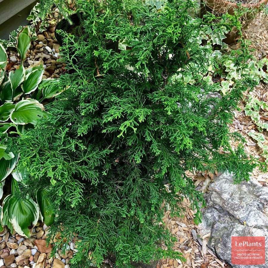 - Горохоплодный. Природная окраска голубоватая, сизая. На ее фоне живописно выглядят желтые горошины шишек диаметром 0,6 см. Крона конусовидная у видового растения, но культивары могут быть и другими (например, Нана — с подушковидной кроной высотой не более 60 см). У сорта Бульвар побеги имеют загнутые внутрь кроны концы, из-за чего крона выглядит кудрявой. Филифера отличается цветом широкой конусной кроны (темно-зеленая) и напоминает елку. Разновидность в культуре с 1891 г.