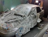он белый и его лучше видно на фоне черного салона автомобиля.