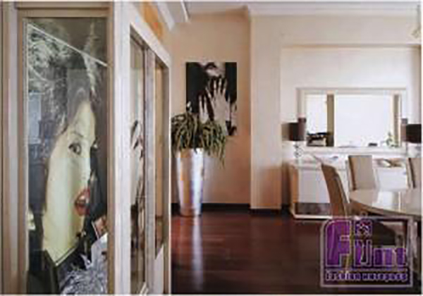 В жилище присутствует много портретов как маленьких, так и больших. Также телеведущая любит смотреть на городской пейзаж, поэтому окна многочисленны, местами они занимают всю стену. Однако они украшены занавесками, которые не только являются декоративным элементом, но и дают скрыться от окружающих. Столы и диваны выделяются округлостью форм, а прочие составляющие мебели имеют острые углы. Выделяется среди мебели фортепиано, которое можно увидеть в гостиной комнате.