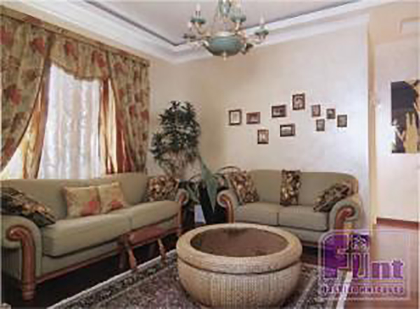 Квартира выполнена в нежных, успокаивающих тонах. Стены большей части помещений окрашены светло-бежевой краской. Присутствуют белые комнаты, элементы темных цветов. Пол преимущественно представляет собой насыщенный коричневый паркет, который выделяется на фоне светлых стен. Кроме этого, обратим внимание на мебель. Она обладает следующими отличительными чертами: