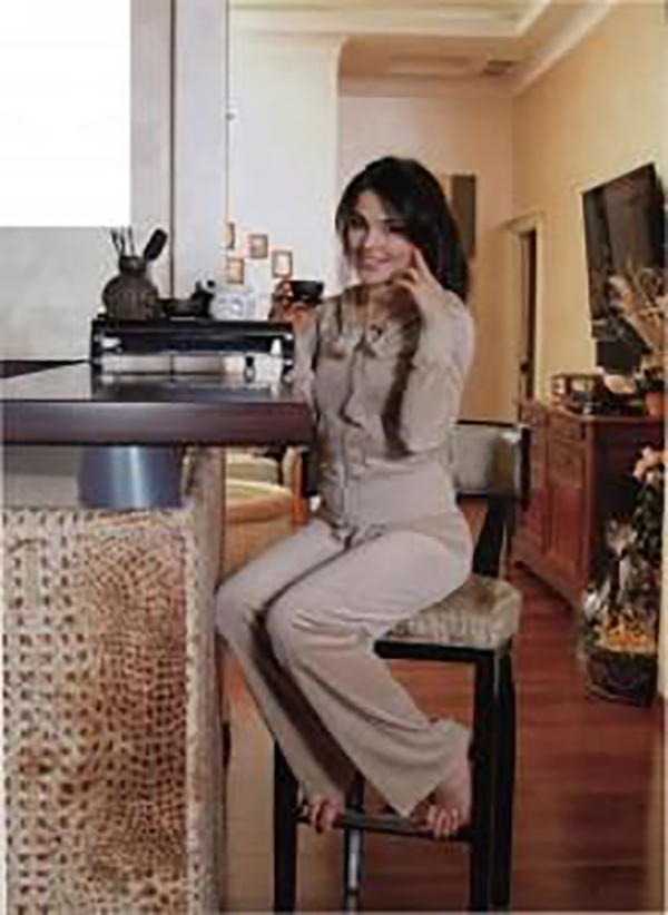 Гостиная выделяются традиционным английским колониальным стилем. Она совмещена со столовой и кухней, однако присутствуют специальные настенные выступы, которые помогают верно распределить пространство. Актрисе нравятся барные стойки, поэтому этот элемент кухни стал для нее обязательным. Также Сати выделяет среди всех предметов витрину, где находятся ее награды. Данное место считается показателем достижений певицы.