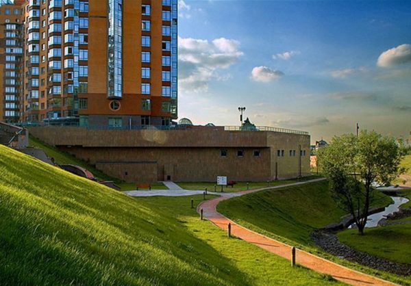Потолки отличаются чистой белизной. Чтобы сделать переход к темному паркету более щадящим, мебель и стены оформляются в промежуточные цвета. Таким образом, элементы дополняют друг друга, делая изменения яркости более мягкими.