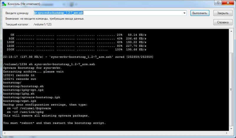 Следующий шаг – запускаем то, что скачалосьBigBox> sh ds_armmarvell-bootstrap_1.0.xshПосле нескольких секунд выдачи ловим строкуSetup complete…Выполняем