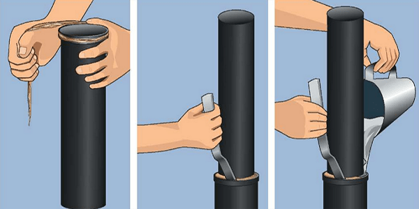 Более технологичным вариантом является зачеканивание чугунных труб. Такой метод заключается в забивании щелей с помощью свинцовых конусов. Благодаря своей мягкости, свинец расплющивается внутри трубы во все стороны, обеспечивая месту ремонта прочность и герметичность.