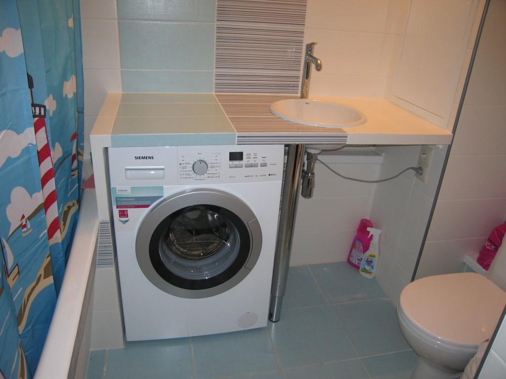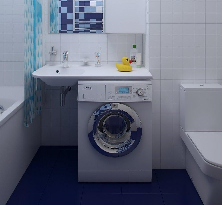 Монтаж стиральной машины под умывальник или раковину — оптимальный вариант для компактной комнаты.