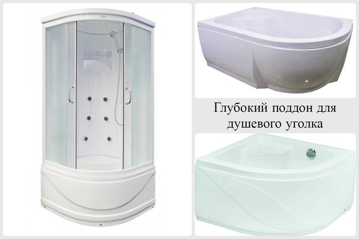 Высота поддона может быть различной. Сейчас в магазинах распространены модели высотой от 0 до 18 см. Бывают также и более высокие модели, высотой до 45 см. Таким образом, поддоны для душевого уголка можно условно разделить на: