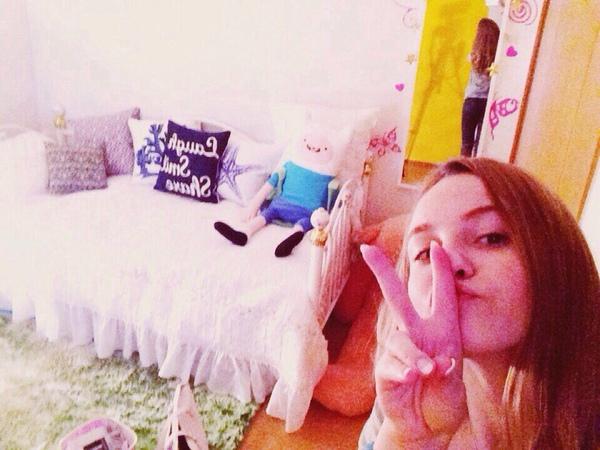 Множество постеров и фотографий на стенах, милые декоративные фигурки окружают жизнерадостную девушку. Отдельное почетное место занимает шкаф с косметикой — рай для любой девочки.