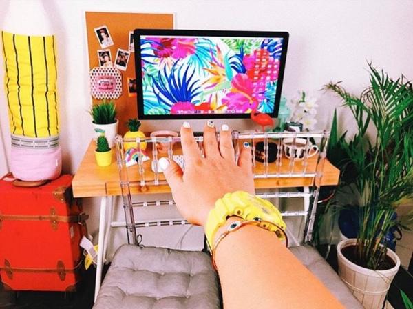 Несмотря на яркие и кричащие цвета, блоги Марьяны наполнены домашним уютом: мягкие ковры, кактусы в кашпо и красивая пальма в кадке.