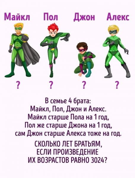 Все задачи на логику с ответами, поэтому узнать разгадку можно с помощью кнопки ниже.