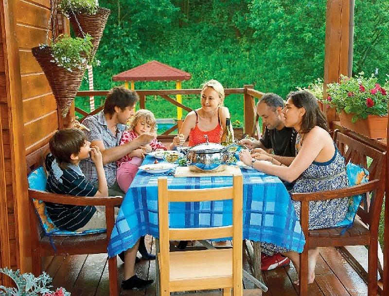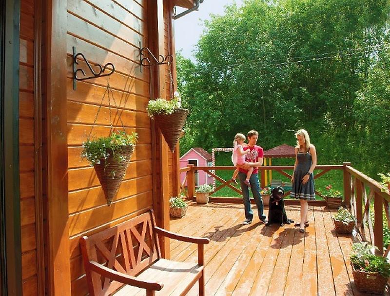 На территории имеется большая терраса, беседка, мангал, искусственный пруд и детская площадка и домик в розовом цвете для дочери певца Таисии.