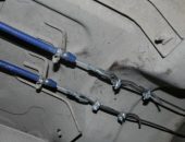 На следующем этапе замены ручника производится демонтаж его троса. С этой целью механик осуществляет отсоединение передней части троса от его задних элементов и производит демонтаж кронштейна заднего троса. После получения доступа к тросовой крышке, мастер демонтирует её, отвернув крепёжные гайки.
