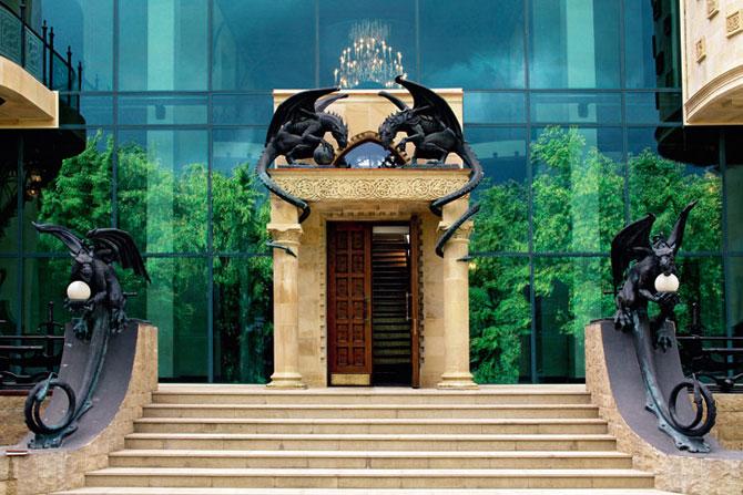А главный вход в жилище украшают то ли химеры, то ли драконы.