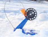 - Во время установки нужен снег. Если он есть, то жерлица закрепляется в кучке снега над лункой, это гарантирует устойчивость конструкции.