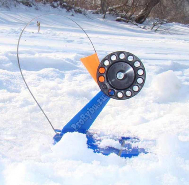 Состоит из пластикового круга с прорезью для лески, в который вмонтирован штырь с катушкой и флажком. Очень легко устанавливается на лунке, не требуя усилий по вмораживанию конструкции в лёд. Кроме того, эта конструкция затеняет лунку, не отпугивая рыбу.