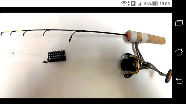 Сложного в его устройстве ничего нет. Подлёдный фидер состоит из зимнего удилища с катушкой, хлыстика (длина – около 20 см), сошек для установки снасти над водой и кормушки.
